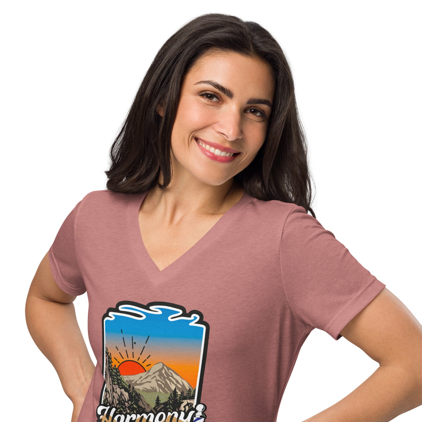 Harmony in the Hills - Printed Women’s relaxed v-neck t-shirt