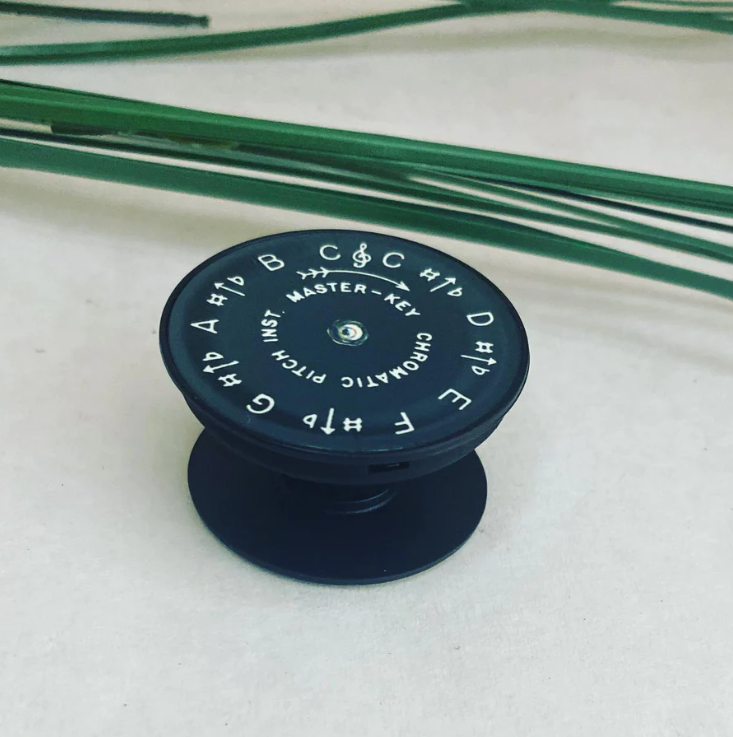 Adorable pop-up phone grip for the back of your phone. Has an image of a black c-c pitch pipe on it!